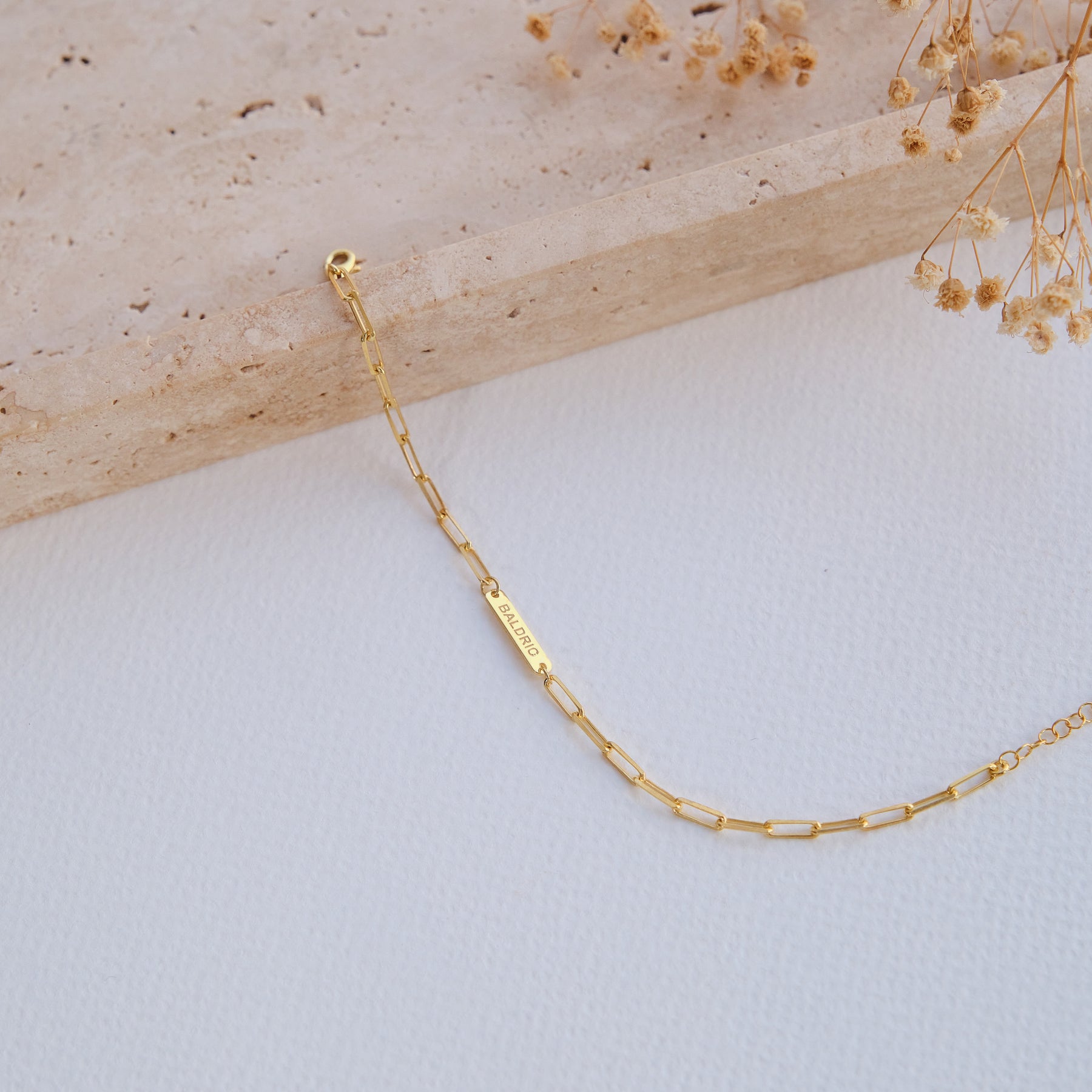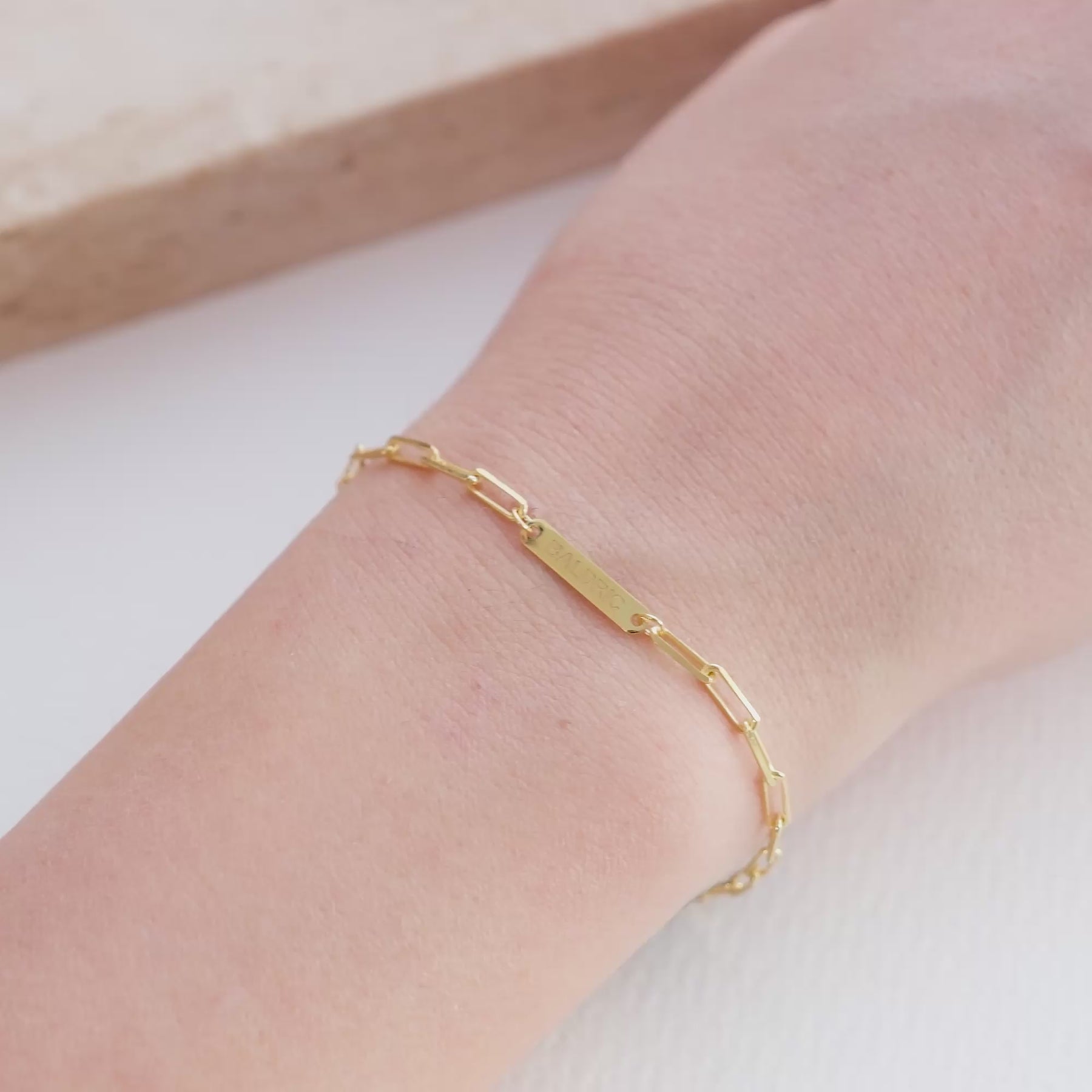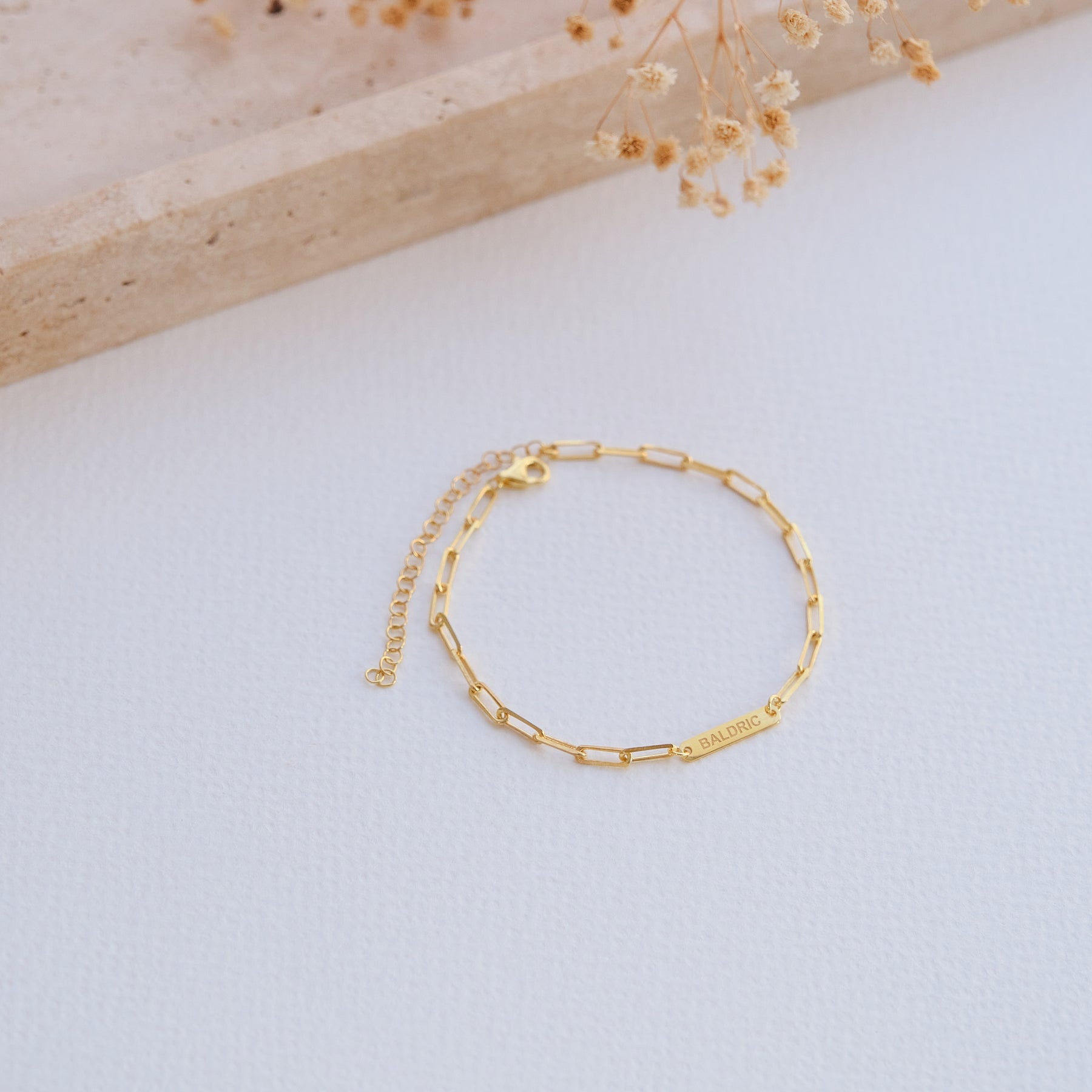 In der Mitte des Armbands befindet sich eine filigrane Gravurplatte, die individuell mit einem Namen, Datum oder einem besonderen Wort veredelt werden kann. Jedes Armband wird mit höchster Präzision gefertigt – ein edles Einzelstück, das Erinnerungen für die Ewigkeit festhält.