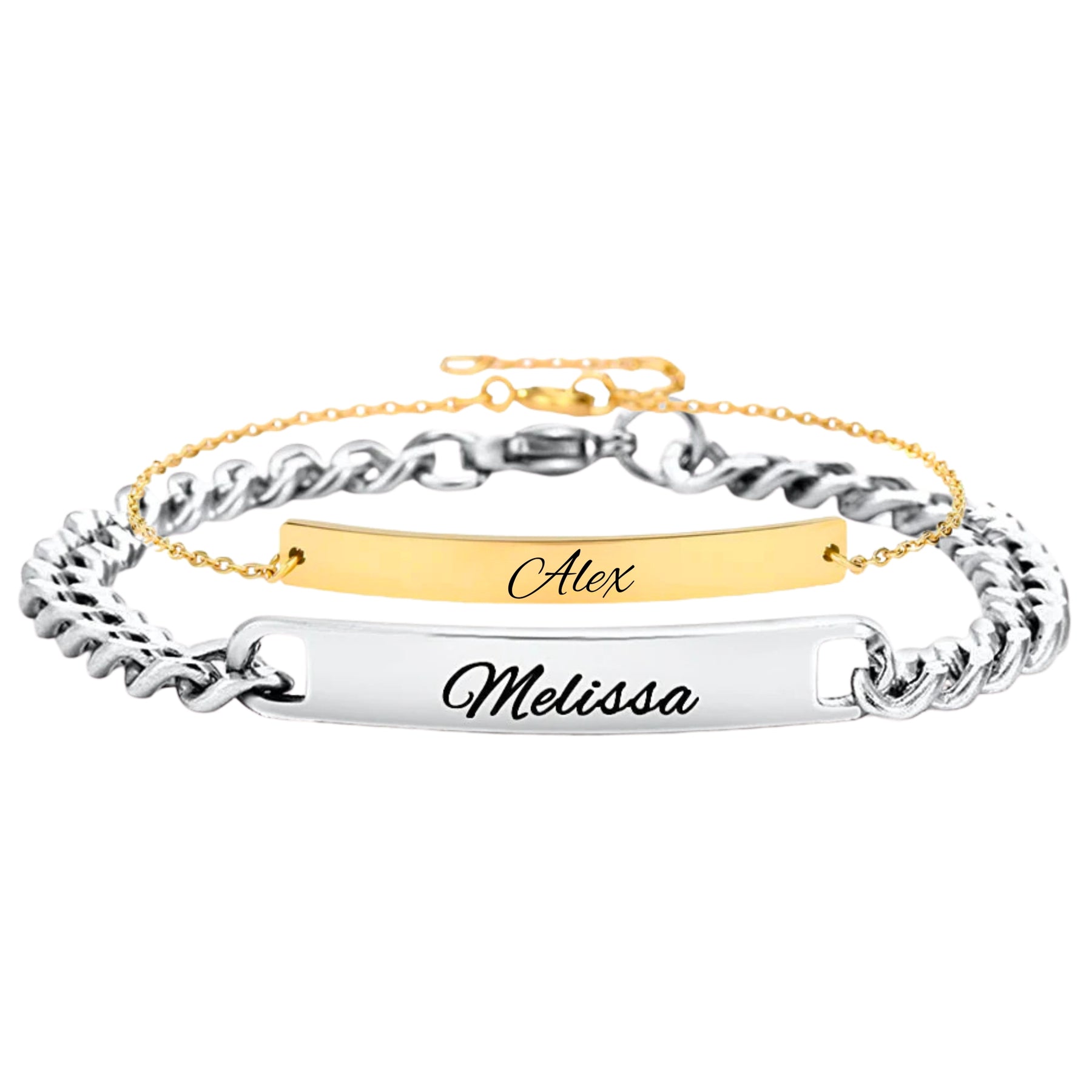 Beide Armbänder tragen eine personalisierte Gravur und werden so zu einem besonderen Symbol eurer Verbundenheit.